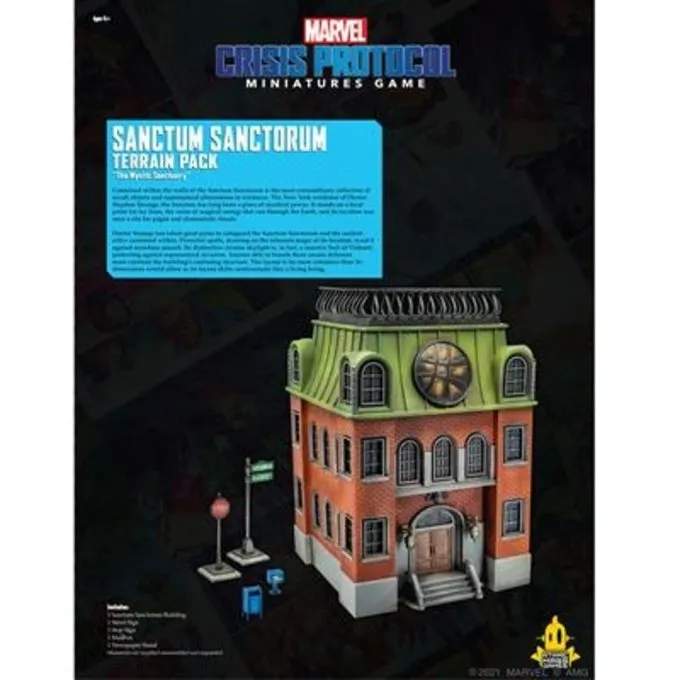 Expansieset voor miniaturenspel Marvel Crisis Protocol, waarmee je het gebouw Sanctum Sanctorum aan je spel kunt toevoegen.