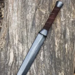 Deze unieke houder heeft een rauw uiterlijk. Hij is gemaakt van een hoge kwaliteit leer met canvas rafels en een handgestikte afwerking. Dit is de perfectie aanvulling op je LARP outfit van wilde oerpersonages en ook perfect voor Cosplay van bijvoorbeeld Game of Thrones personages. De houder wordt geleverd inclusief twee werpmessen met een oerkarakter: een benen werpmes en een stenen werpmes. De houder is uiteraard ook geschikt voor andere Epic Armoury werpmessen. Aan de achterkant heeft hij leren lussen zodat je hem aan een riem kunt hangen.