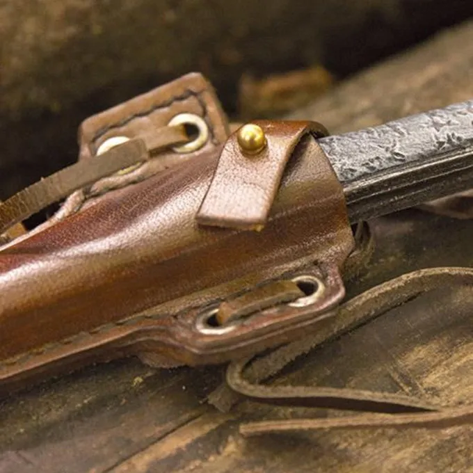 Deze set bestaat uit een leren houder met daarin een LARP killermes. Met de veters kan je de houder aan een belt of bandelier vastmaken. Met een extra lus kan je het mes goed vastzetten in de houder zodat hij zelfs in het heetst van de strijd gewoon goed blijft zitten.