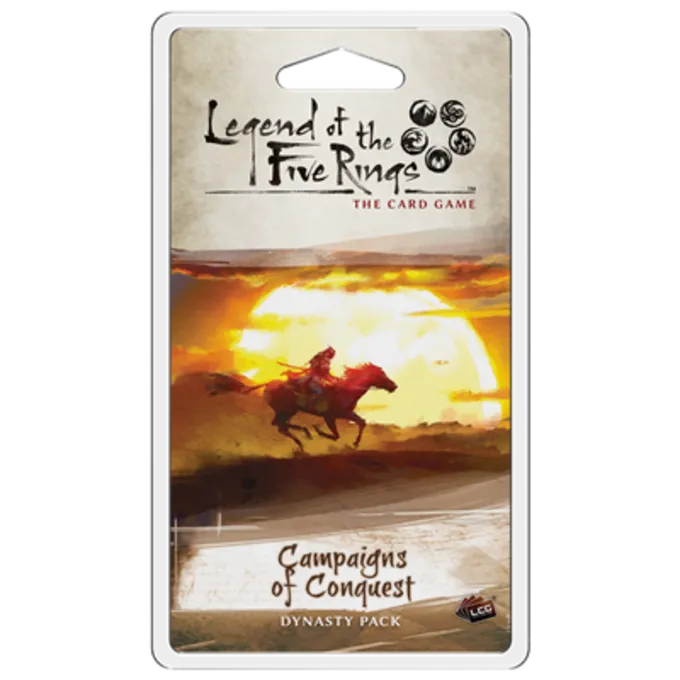 Als het volgende stuk van de Dominion & NBSP; cyclus voor legende van de vijf ringen: het kaartspel , campagnes van Conquest leunt naar de grootste thema’s van De cyclus, met drie dynastie -deck -evenementen en negen kaarten met het nieuwe rally -trefwoord. Nieuwe kaarten voor elk van de zeven grote clans verbeteren hun dekbuilding -opties, terwijl een nieuw Lion Stronghold Lion Clan -spelers uitnodigt om een ​​nieuw type dek te verkennen, gecentreerd op je Bushi . Kun je de toekomst van het Emerald -rijk beschermen en de eer van je clan handhaven?