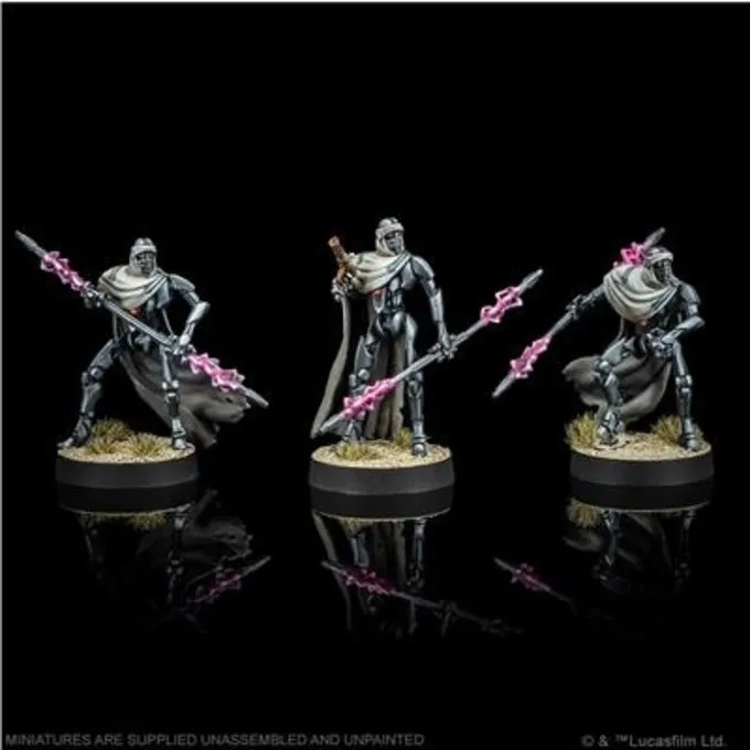 Bescherm Key Separatistisch personeel met de IG-100 Magnaguards-eenheidsuitbreiding voor Star Wars: Legion! Deze onverzoenlijke droids zijn geprogrammeerd als onfeilbare lijfwachten voor belangrijke separatistische commandanten zoals General Grievous en Count Dooku. Gewapend met dodelijke elektrostaffs en precisieblasterpistolen, zullen de dreigende magnaguards blijven vechten na het verliezen van ledematen-of zelfs hun hoofd!