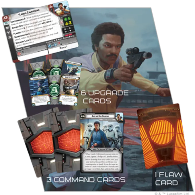 Hoewel de miniatuur Calrissian een unieke aanwezigheid op het slagveld geeft, vertegenwoordigen andere componenten, zoals zijn eenheidskaart en drie handtekeningcommando -kaarten, zijn geschiedenis als een gokker en zijn neiging om hoge inzetrisico’s te nemen. Ten slotte is Lando Calrissian niet iemand die onvoorbereid is, en deze uitbreiding bevat ook zes upgrade -kaarten die hem toegang geven tot de uitrusting en training die hij nodig heeft om elke uitdaging aan te gaan.