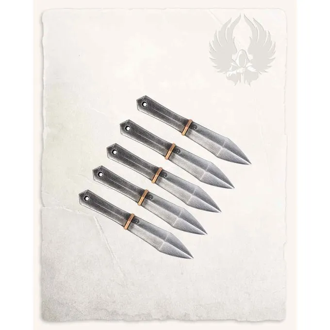 Deze set van 5 LARP messen Silos is geschikt voor cosplay, photoshoots en LARP. Dit product is gemaakt van schuim zonder GFRP-kern. De werpmessen kunnen daardoor voor zowel gebruikt worden om mee te steken als te gooien. De set heeft een klassieke look en is dus geschikt voor veel karakters.