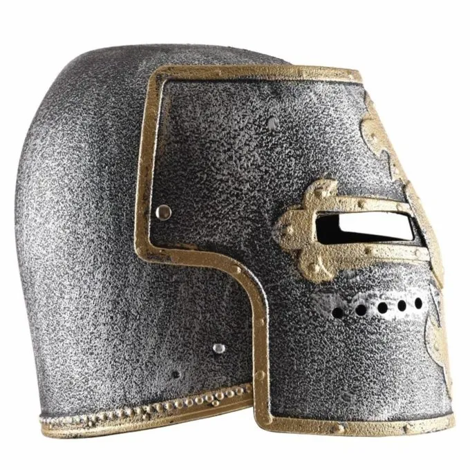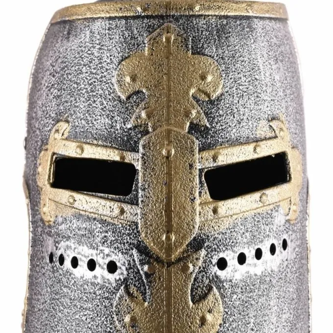 Deze speelgoedhelm is voor kinderen die zich willen verkleden als middeleeuwse ridder. De helm is gemaakt van plastic en heeft een licht gewicht dus hij kan comfortabel voor langere tijd gedragen worden. Hij heeft een realistische afwerking waardoor hij er levensecht uitziet.